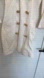 Elegant white dress featuring a double-breasted design with gold buttons. Perfect for formal occasions.