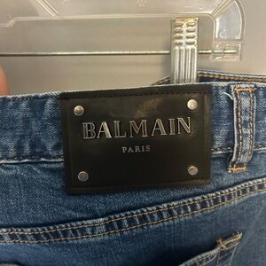 Classic pair of Balmain jeans with leather patch and studs along with branded rivets