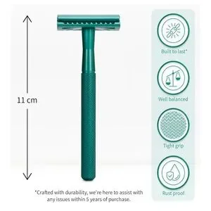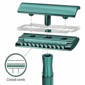 Bambaw, closed comb, single blade safety razor, metal razor, Sea Green, wet shaving, sensitive skin, ingrown hair, irritation, double edge blades, Nowasteman, super platinum steel, maximum precision, eco friendly, sustainable, high quality, shaving kit, built to last, men, women, rust resistant, new, zero waste, shaving essentials.