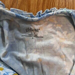 Bamboo PJs Pajamas Little Me 6 months Blue Daisy Double Zipper