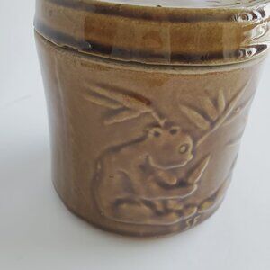 Bamboo & Panda Bear Design Ceramic Container Canister Embossed Graphic L. Brown
