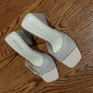 Step out in style with these elegant Bamboo heels. Featuring a stunning silver and tan design, these shoes are perfect for any occasion. The sparkling silver adds a touch of glamour, while the tan complements any outfit.