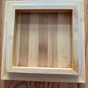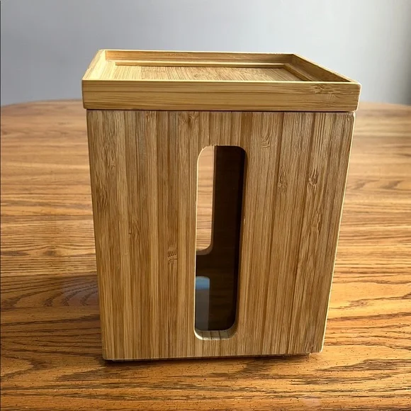 Elegant bamboo storage box. Features a clear window. Perfect for organizing. Has a removable plastic liner-easy to clean.Bamboo wood polished to a smooth finish. Used but like new-just have too much kitchen storage. Freshly washed. SmokeFree/ PetFree home.
