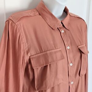 Banana REPUBLIC copper tone neutral tone button down shirt blouse size Small @L1