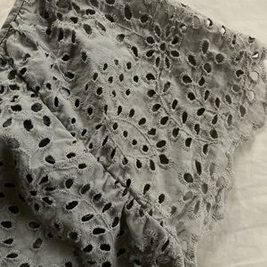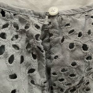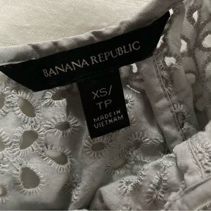 Banana republic, embroidered eyelet, cotton, gray flutter, raglan sleeve top. Size XS. Pit to pit 18 inches. Lightweight and cool cotton. Flattering and versatile piece. Loop button closure. 100% cotton.