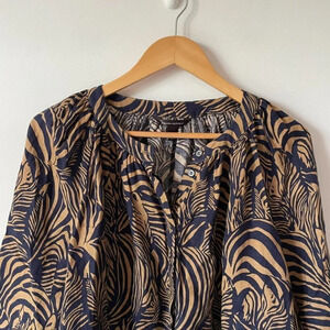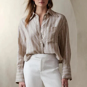 Banana Republic 100% Linen The Boxy Cropped Shirt Striped Zebra Size Small