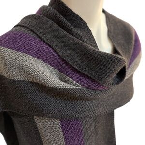 Banana Republic 100% Merino Wool Scarf – Charcoal, Grey & Purple Stripes