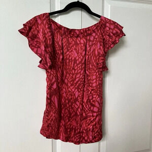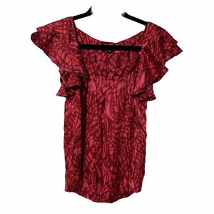 Banana Republic 100% Silk Pink Red Ruffle Sleeve Top Womens XS Barbie Y2K