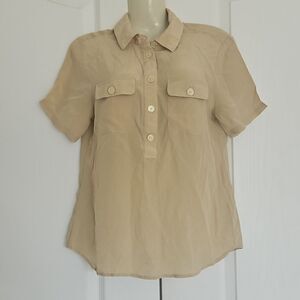 Banana Republic 100% Silk Short Sleeves Top Champagne XS
