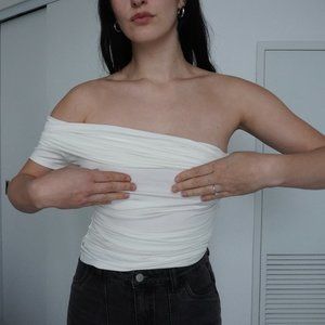 Banana Republic Athena One-Shoulder Top White NEW!