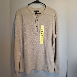 Elevate your casual wardrobe with this stylish beige Henley shirt. Perfect for any occasion, it offers comfort and a classic look.