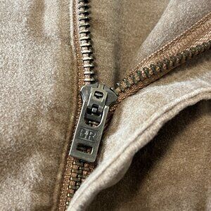 BR Pleated Trouser. Features an innovative Italian moleskin cotton that has a flannel-like finish. Relaxed Tapered Fit as shown on inner waist.