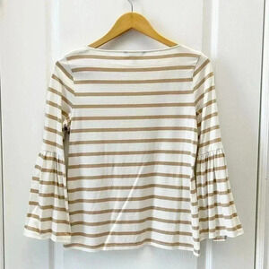 Banana Republic Bell Sleeve Top Supima Cotton Stripes White & Tan Size XS