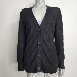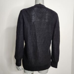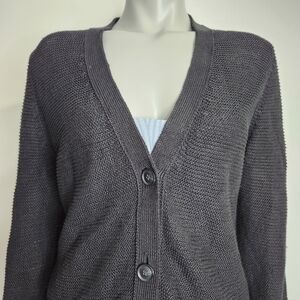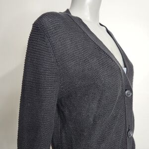 Banana Republic Black 100% Linen Open Knit V Neck Button Cardigan Size L