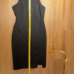 Black Banana Republic dress, size 4 petite, lined, black with a white stripe neck detail. In great condition! Worn only a few times because the fit was not quite right for me. Very small smudge on the shoulder (pictured) - might come out with a dry clean.
