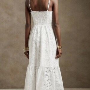 This midi dress has a flattering twisted bodice and a feminine, flounce hem. Crafted in luxe, textured eyelet and lined in soft, breathable cotton.