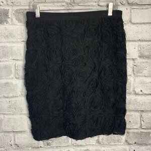Banana Republic Black Floral Textured Rosette Chiffon Pencil Skirt