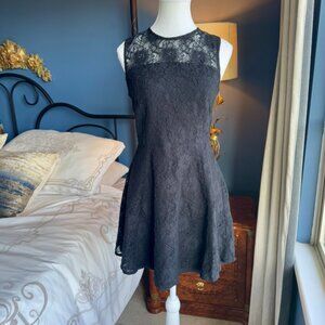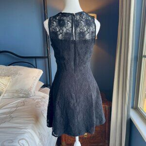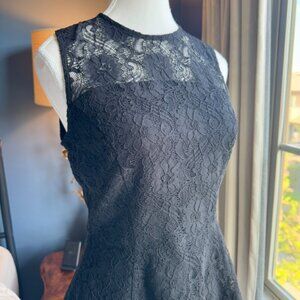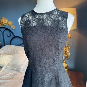 Banana Republic black lace sleeveless party dress, size 6. Lined, zipper and button closure at back. Excellent used condition. Bust measures 17 inches laying flat, waist 14 inches flat, hips 22 inches flat, length from shoulder to hem is about 32 inches. Has some stretch. Cat friendly. nonsmoking home.