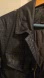 Sleek black (almost blue black) military-style jacket. Features multiple pockets and button details, including internal zip pocket.
