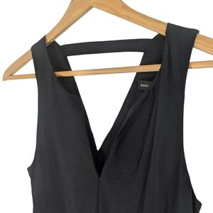 Elegant black mini dress. Sleeveless design. Perfect for any occasion.