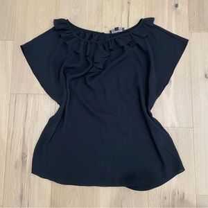 Banana Republic | Black Ruffle Boatneck Short Sleeve Blouse 🖤