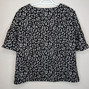 Banana Republic Black & Silver Grey Leopard Print Dressy Top Short Sleeve Medium