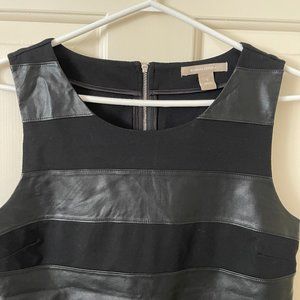 Front of top is striped with vegan leather mix.