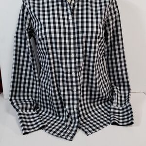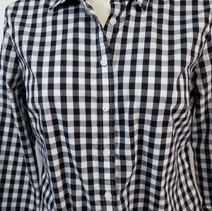 Banana Republic Black & White Plaid Fitted Blouse