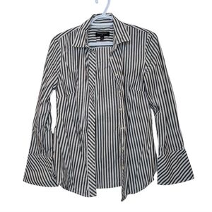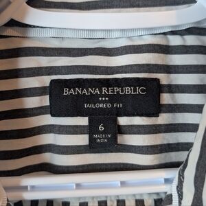 Banana Republic Black & White Striped Button Down Tailored Fit Flare Wrist Sz 6