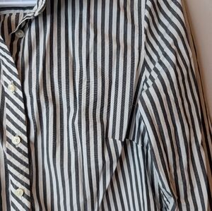 Chic and timeless black & white vertical striped button-up blouse by Banana Republic.