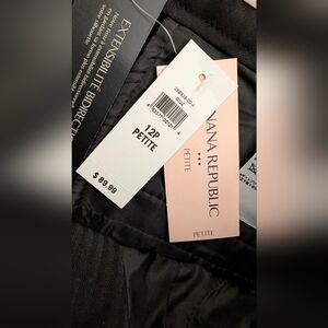 Experience the refined elegance of Banana Republic's black trousers. These trousers feature a straight-leg cut, offering a sleek and professional appearance perfect for business settings. Their timeless design ensures they remain a versatile staple in any wardrobe.