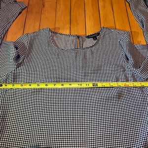 Banana Republic Black/White Houndstooth Blouse with Side Flounce Detail, Size S