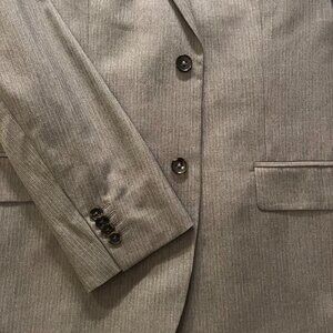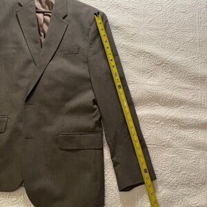 Classic and versatile Banana Republic men’s blazer in a sophisticated taupe-brown pinstripe pattern. Perfect for business, formal occasions, or smart-casual wear.
