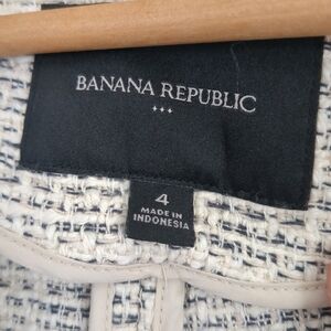 Elevate your style with this elegant cream tweed jacket from Banana Republic. Perfect for any occasion, this jacket offers a sophisticated look with its classic design.
