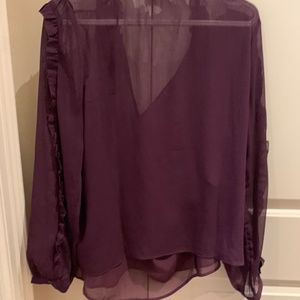 sheer ruffled BR blouse ( comes with build in inner camisole ) , worn only twice, size medium,.