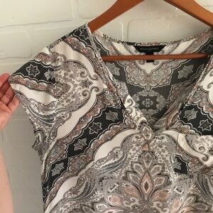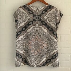 Banana Republic Blouse Cream/black/gray/blush pink Mosaik print Cap sleeve S
