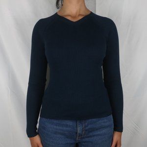 Banana Republic Blue 100% Silk Knitted V-neck Sweater, Size S