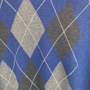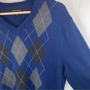 Banana Republic Blue Argyle Cashmere Silk Blend V-Neck Men's Sweater sz L