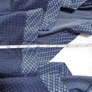 You'll love this very flowy summer dress by Banana Republic. This dress is blue with a small white and light blue polka dot pattern. The hem and faux side tie are in a contrasting square and dot pattern.