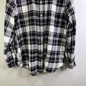 Banana Republic Boyfriend Fit Black & White Plaid Button Down Shirt Size Medium
