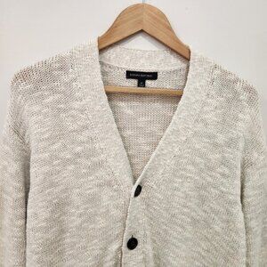 Banana Republic Cardigan Sweater Mens Natural Medium Knit Cotton Linen Blend