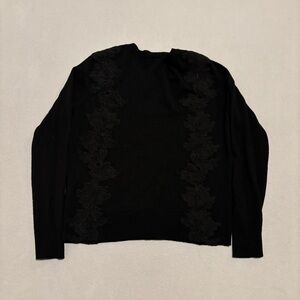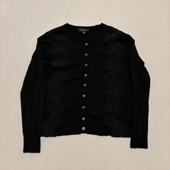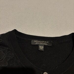 Banana Republic Cardigan Womens Medium Black Merino Wool Floral Grandma Academia