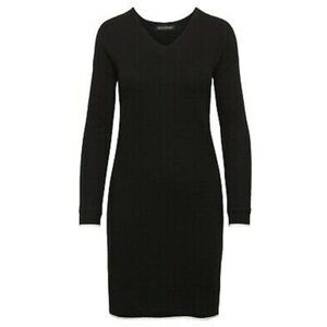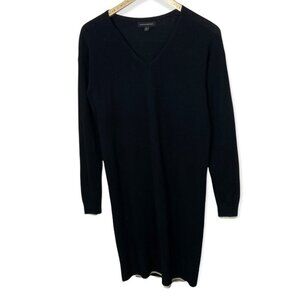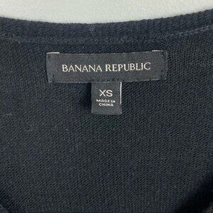 Banana Republic V-Neck Sweater Dress in Women's Size XS. 39% Rayon, 33% Merino Extra Fine Wool, 20% Nylon and 8% Cashmere. Solid black with thin white trim along the hems. Retails for $89 USD (approximately $124 CAD). Very good pre-loved condition. No visible flaws.