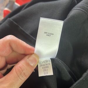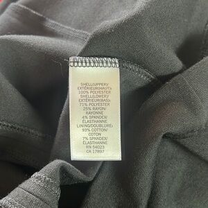 - This dress hit me at the knee, the black bottom is so comfortable and feels like sweat pant material but looks sharp, I've turned lots of heads in this dress and vou can too!! Zips in the back. Thicker cotton stretch material for bottom and an overlay thin fabric with modern design on top.