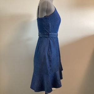 Faux-wrap dress from Banana Republic with flutter skirt and tie. Nice lightweight chambray fabric which is great for summer.