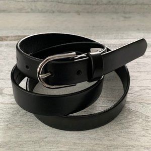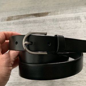 Genuine leather belt with a shiny silver D-shaped buckle.