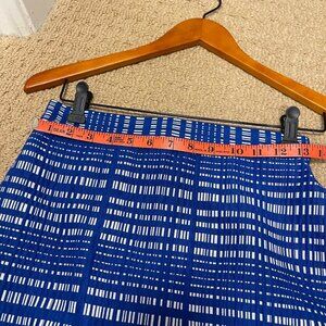 Modern and chic, this Banana Republic pencil skirt features a striking cobalt blue crosshatch pattern and a flattering high-waist silhouette. Fully lined for comfort and structure, it’s perfect for the office or dressed up for evening. The structured texture adds a unique twist while maintaining a clean, classic fit.