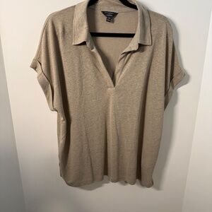 Banana Republic Collared Jersey Top – Taupe (Size L) | Effortlessly Polished!