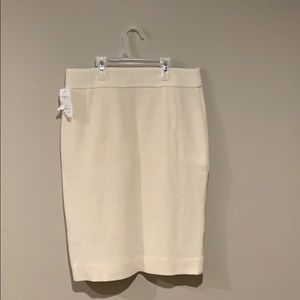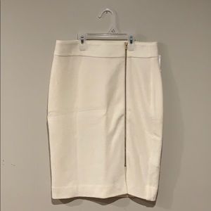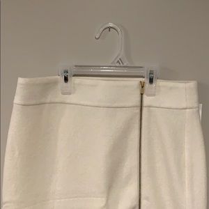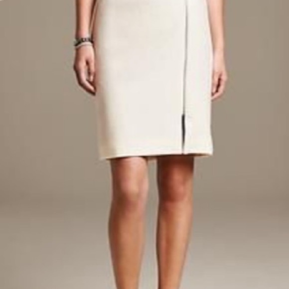 New with tags Banana Republic lined off-white wool pencil skirt with front slit and zipper in women’s size two (2).