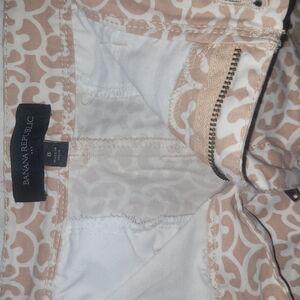 Chic cream shorts with an intricate tan pattern. Perfect for casual summer days.